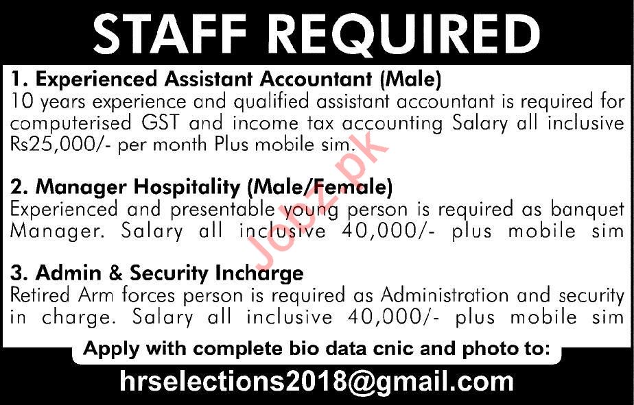 Assistant Accountant, Manager, Admin & Security Jobs 2019