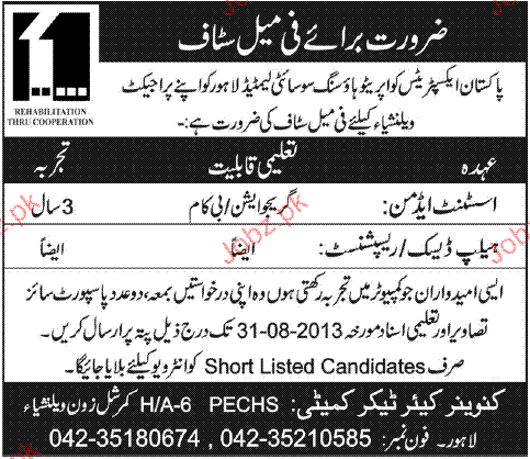 Apply as per details in job advertisement. Login to view further details of how to apply via https://www.jobz.pk online.
