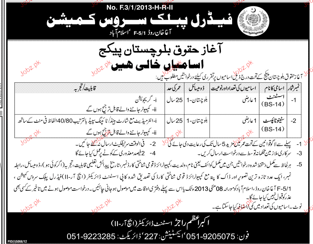 Latest Federal Public Service Commission FPSC Admin Clerical Posts Islamabad 2025