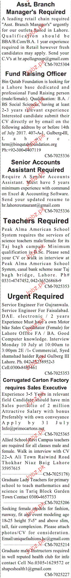 Apply as per details in job advertisement. Login to view further details of how to apply via https://www.jobz.pk online.