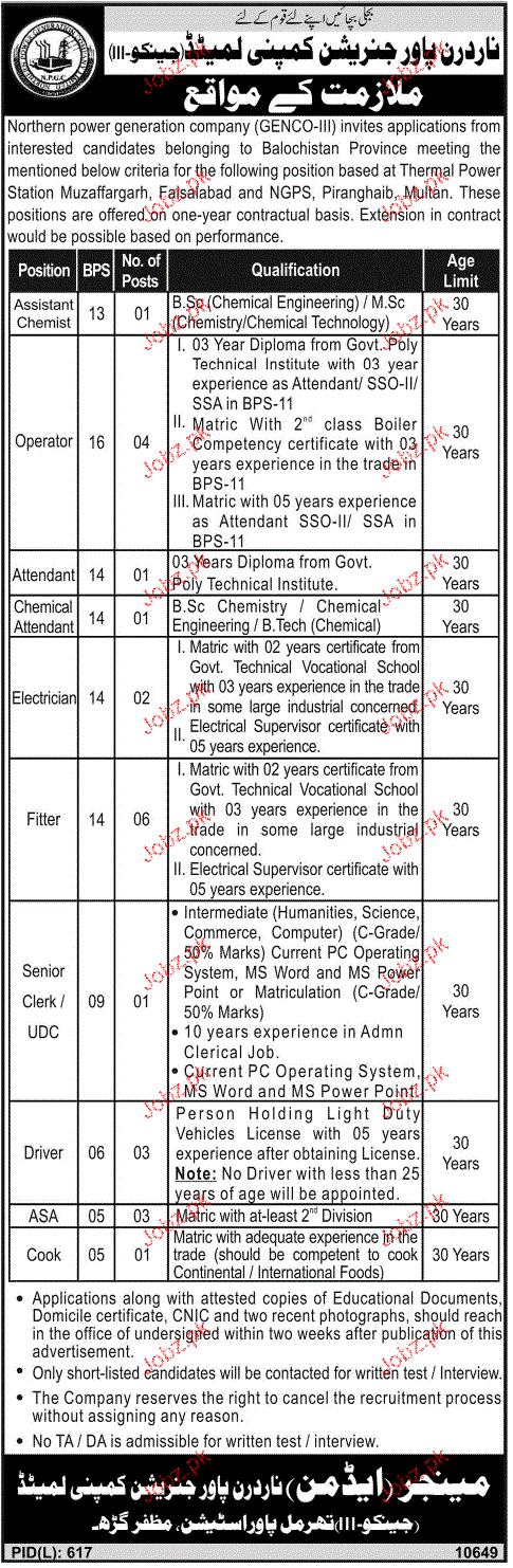 Apply as per details in job advertisement. Login to view further details of how to apply via https://www.jobz.pk online.