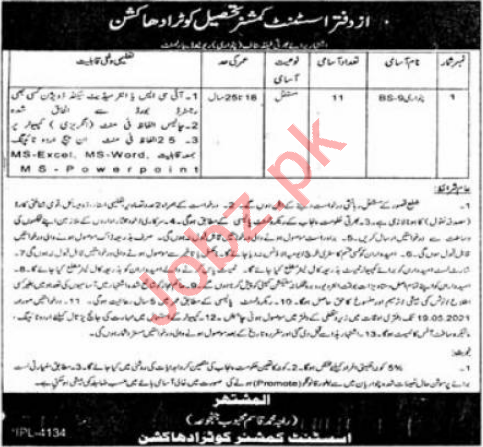 Assistant Commissioner AC Kot Radha Kishan Jobs 2021