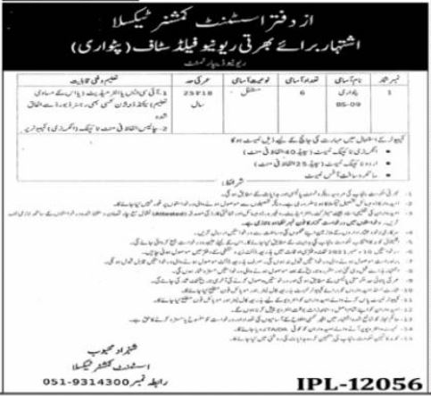 Assistant Commissioner Ac Taxila Jobs 2021 For Patwari