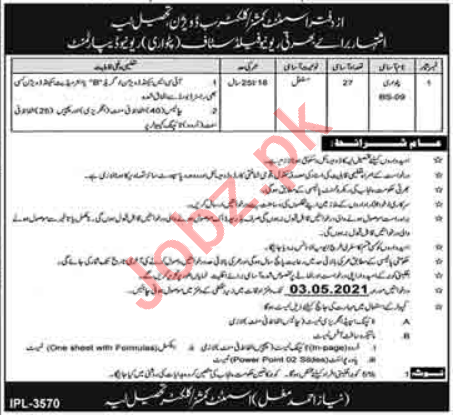 Vacancies in Revenue Department Advertisement April 2021