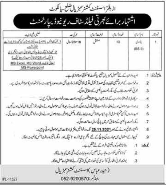 Assistant Commissioner Office Sambrial Sialkot Jobs 2021