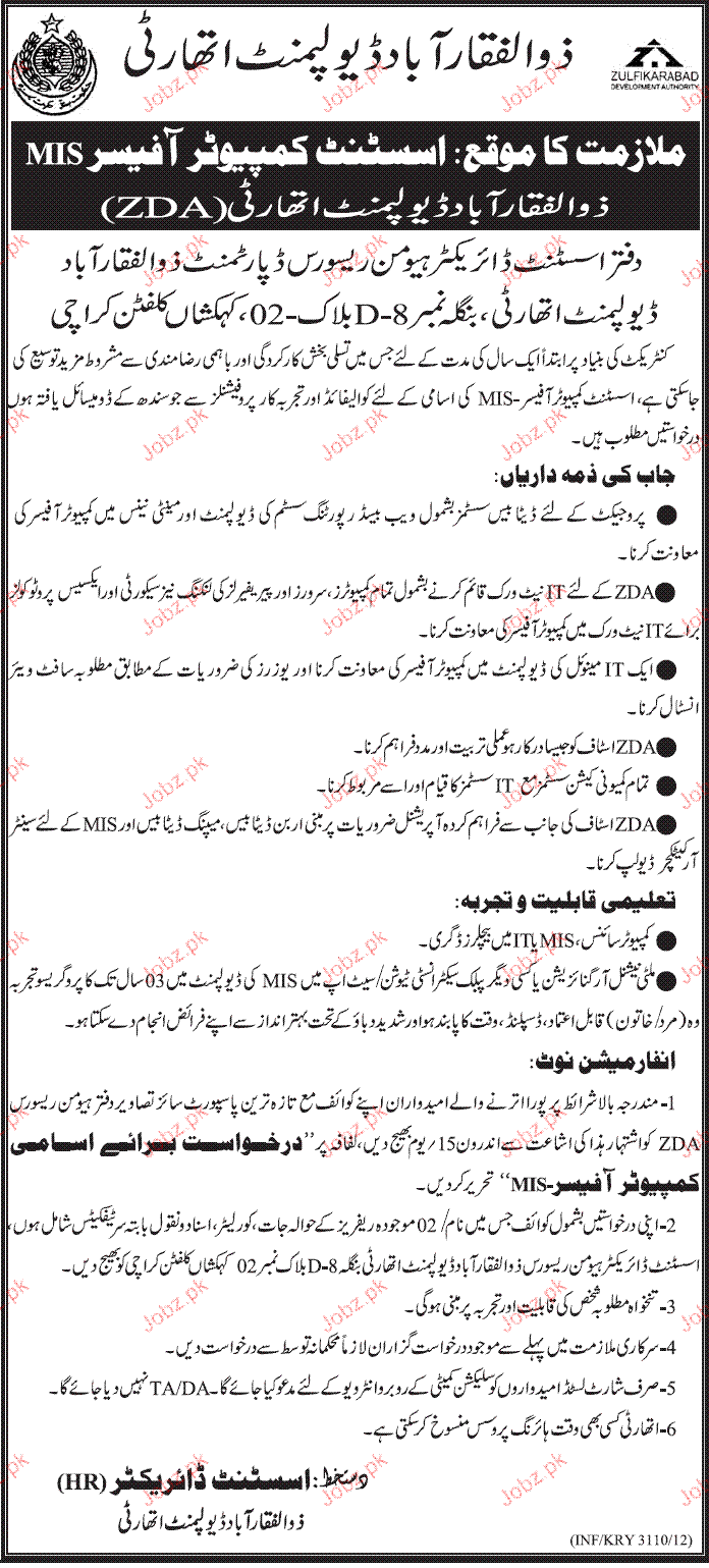 Apply as per details in job advertisement. Login to view further details of how to apply via https://www.jobz.pk online.