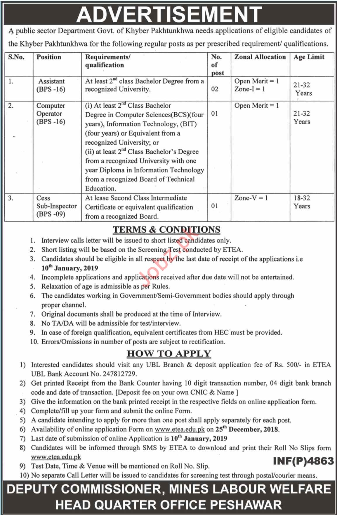 Assistant, Computer Operator & Cess Sub Inspector Jobs 2019