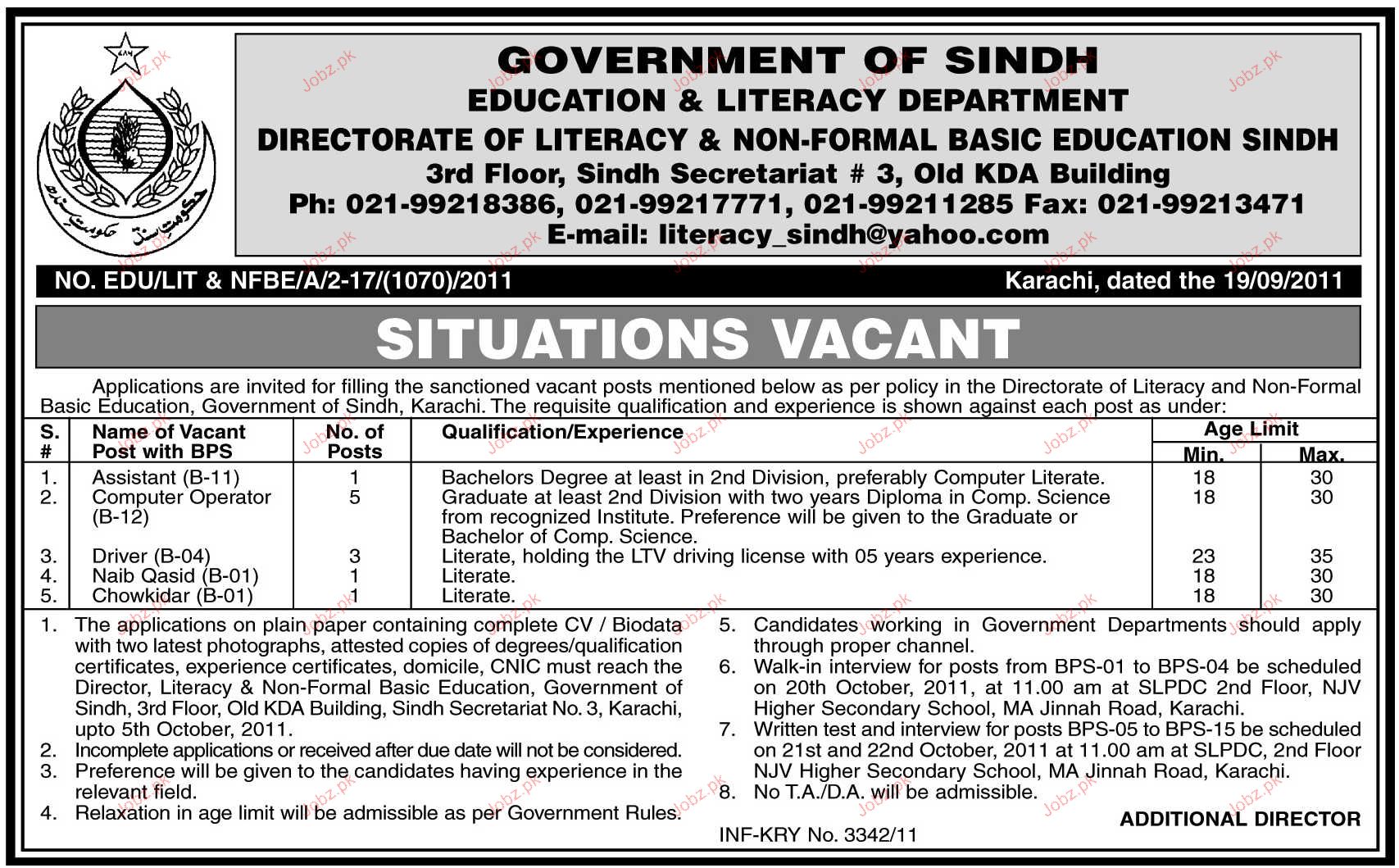 Assistant, Computer Operator, Driver, Naib Qasid Required