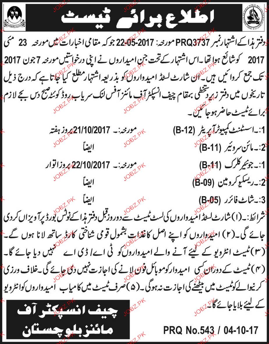 Latest Inspectorate of Mines Computer Posts Quetta 2025