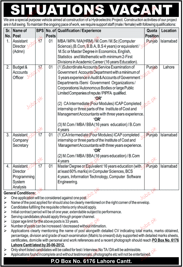 Assistant Director Admin, Budget & Accounts Officer Wanted