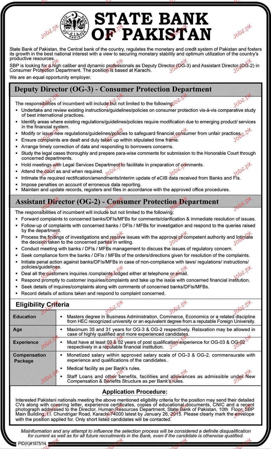 Apply as per details in job advertisement. Login to view further details of how to apply via https://www.jobz.pk online.