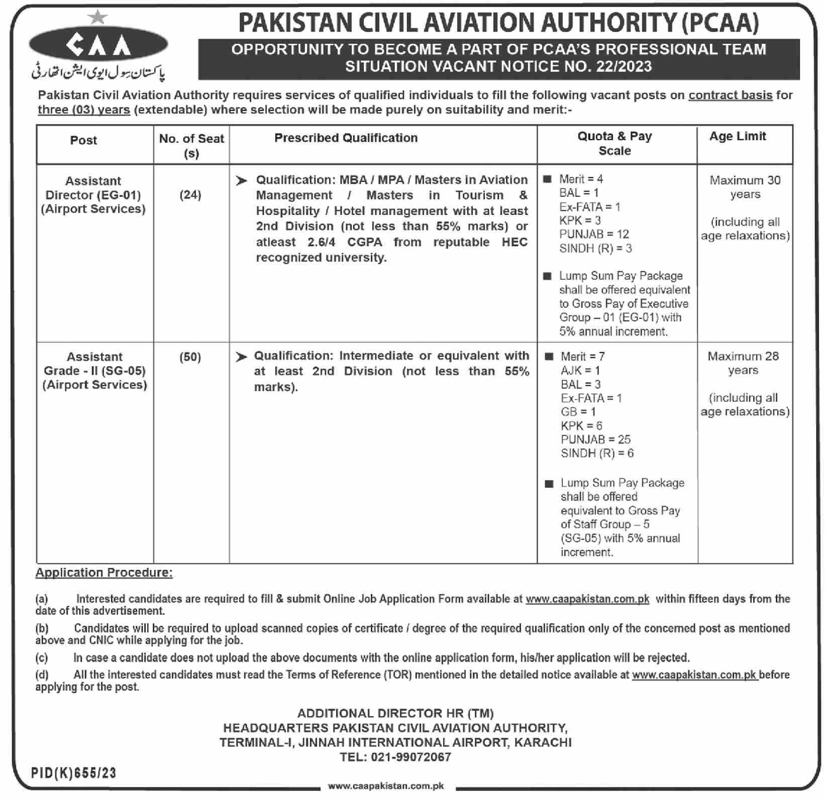 Vacancies in Pakistan Civil Aviation Authority CAA Advertisement August 2023