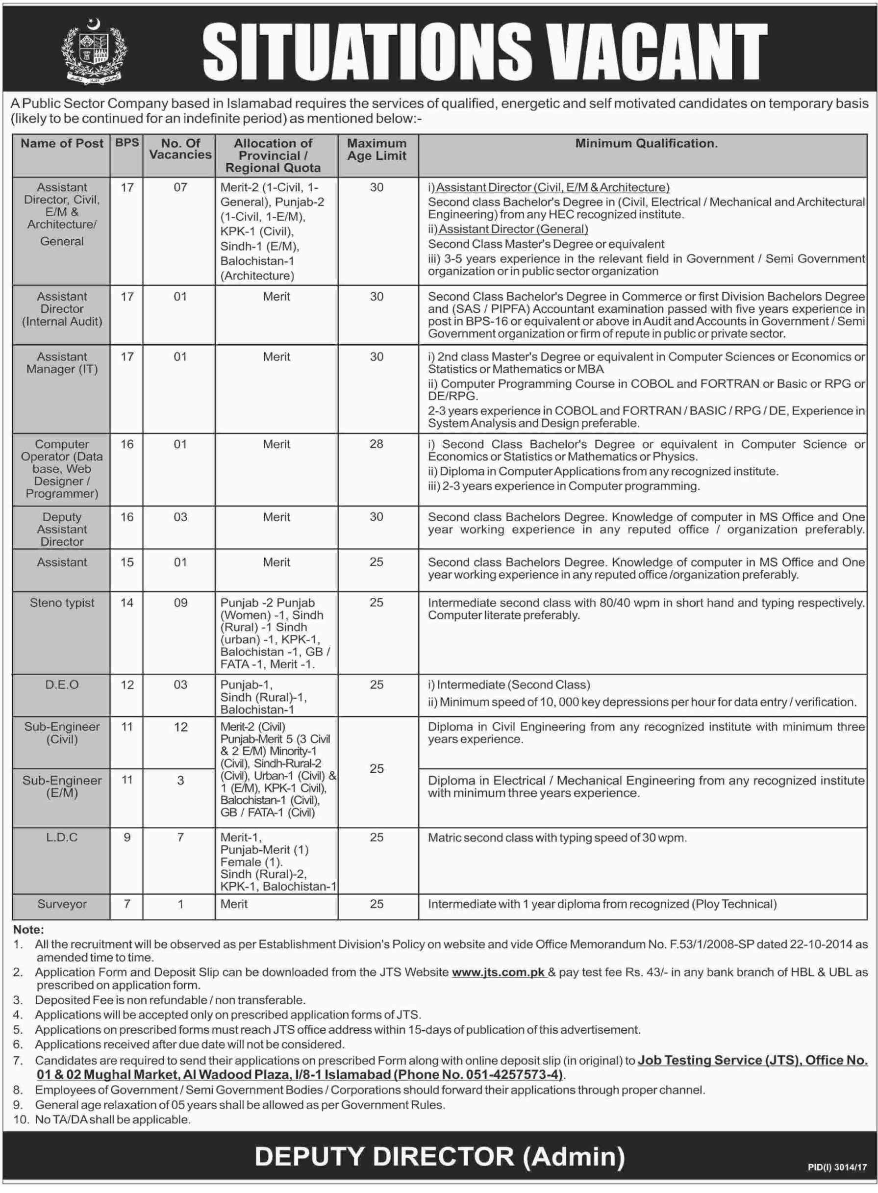 Apply as per details in job advertisement. Login to view further details of how to apply via https://www.jobz.pk online.