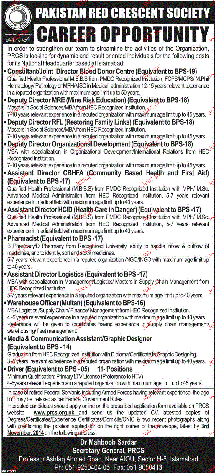 Apply as per details in job advertisement. Login to view further details of how to apply via https://www.jobz.pk online.