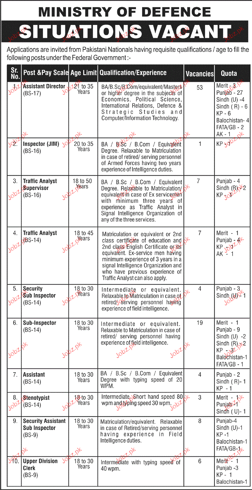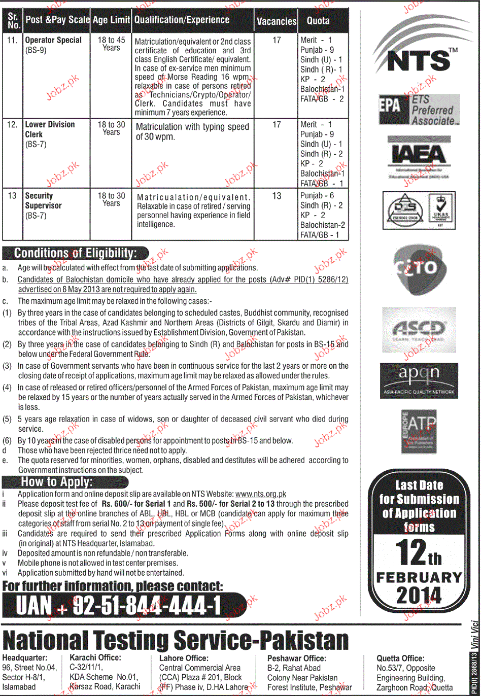 Apply as per details in job advertisement. Login to view further details of how to apply via https://www.jobz.pk online.