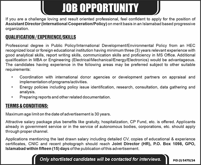 Public Sector Organization is looking for candidates for following posts as per job advertisement published in daily Nawaiwaqt Newspaper of February 12, 2025 for location Islamabad, islamabad Islamabad Pakistan: