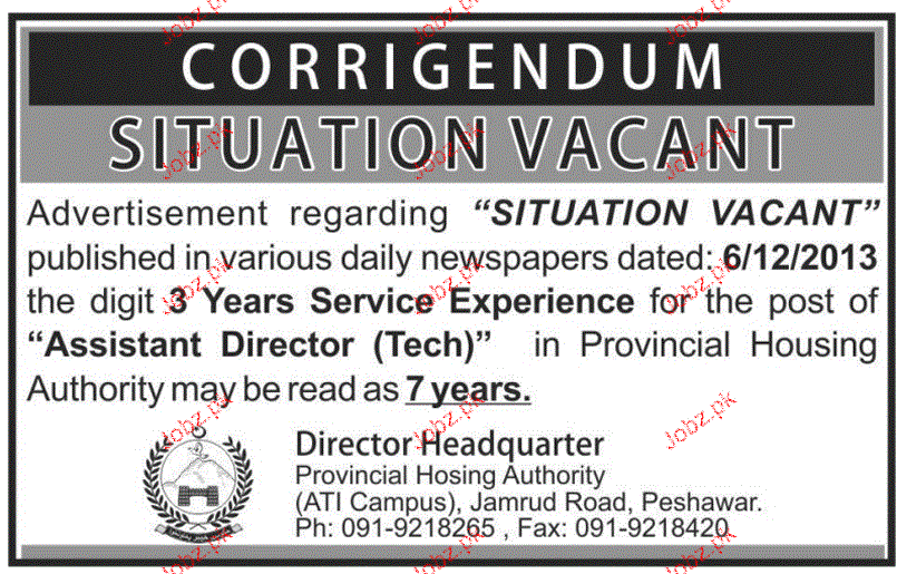 Assistant Director Job In Provincial Housing Authority Pesh