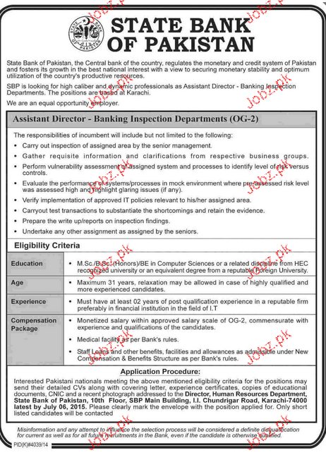 Assistant Director Job In State Bank Of Pakistan