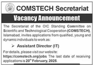 COMSTECH Secretariat is looking for candidates for following posts as per job advertisement published in daily The News Newspaper of February 5, 2025 for location Islamabad, islamabad Islamabad Pakistan: