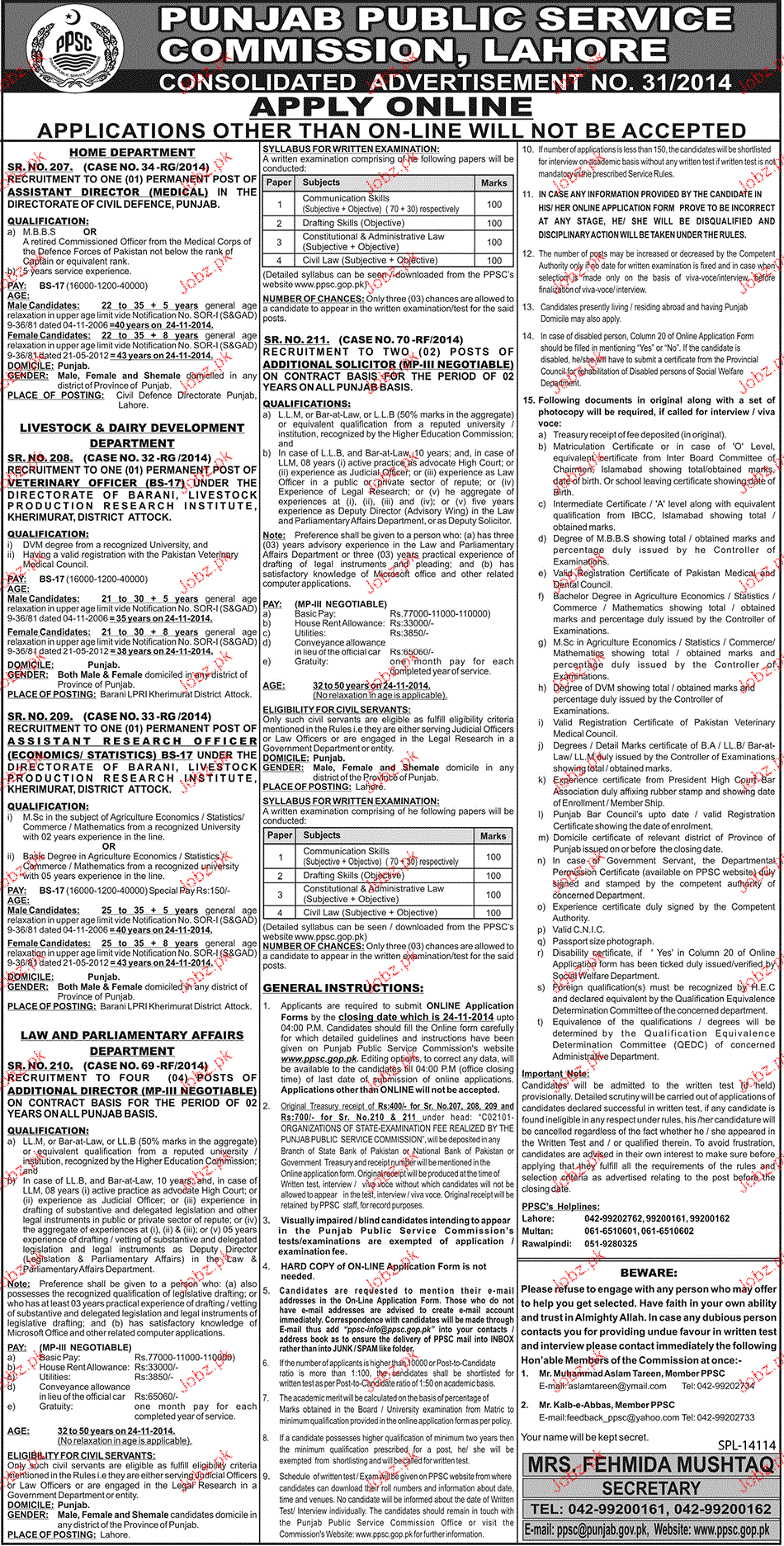 Apply as per details in job advertisement. Login to view further details of how to apply via https://www.jobz.pk online.