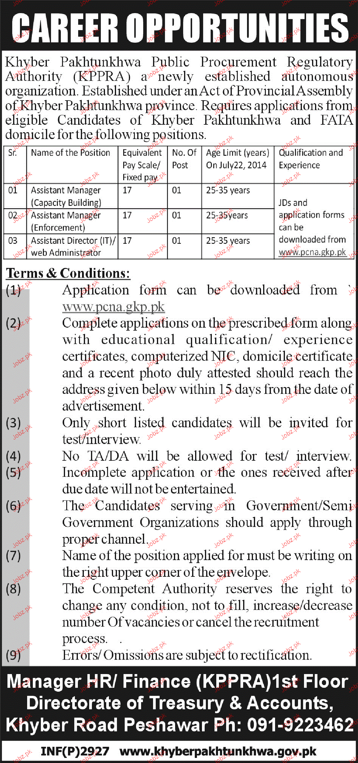 Assistant Directors And Assistant Manager Job In Govt KPK