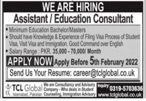 TCL Global Pakistan is looking for candidates for following posts as per job advertisement published in daily Jang Newspaper of January 29, 2022 for location Islamabad Pakistan: