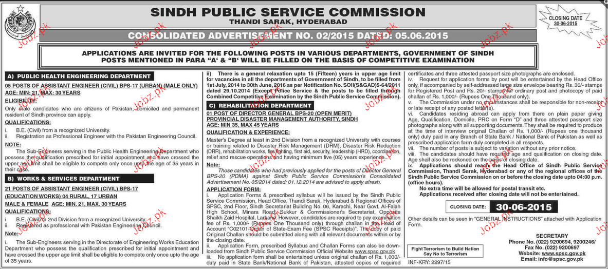 Assistant Engineers and Director General Job in SPSC