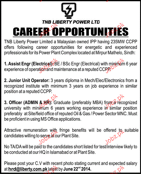 Assistant Engineers, Junior Unit Operators Job Opportunity