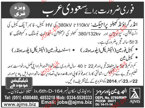 Assistant Foreman, Cable Man Job Opportunity