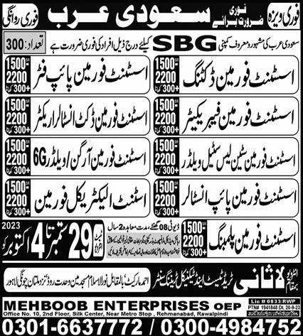 Lasani Trade Test & Technical Training Center jobs advertisement dated about 22 September 2023 in daily Express Newspaper invites application for the vacant post of assistant foreman, assistant foreman pipe fitter, assistant foreman argon welder, assistant foreman welder, assistant foreman pipe installer, assistant foreman docketing, assistant foreman plumbing, assistant foreman fabricator, assistant foreman stainless steel welder, assistant foreman docket installer, assistant electrical foreman and welder in Riyadh, dammam Saudi Arabia. Persons with Intermediate, DAE, B.E, Bachelor and Matric etc. education can apply.