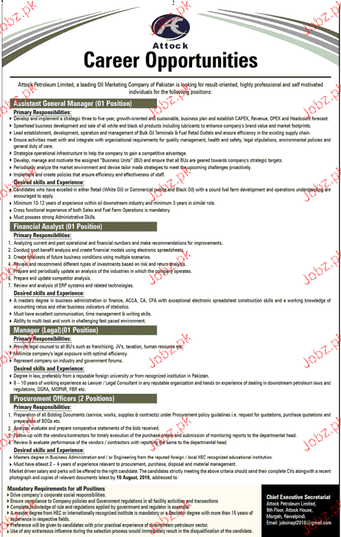 Apply as per details in job advertisement. Login to view further details of how to apply via https://www.jobz.pk online.