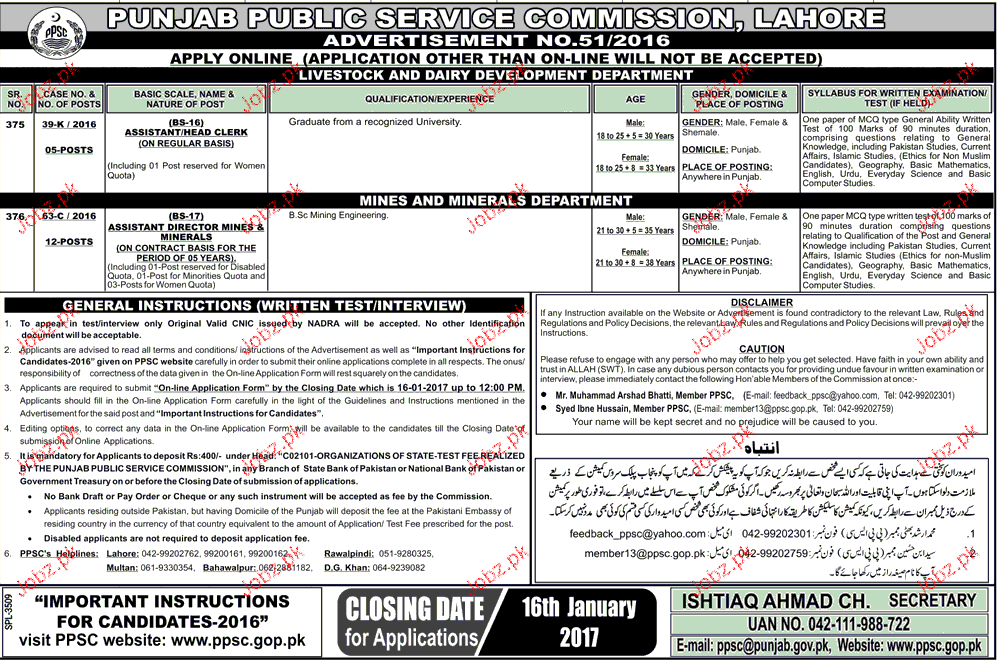 Assistant / Head Clerks And Assistant Director Job In PPSC