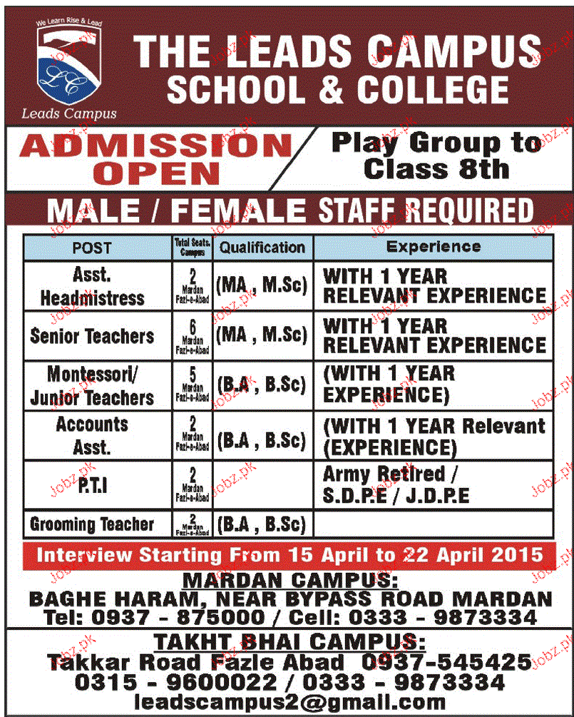 Latest Private Company Teaching Posts Mardan 2025
