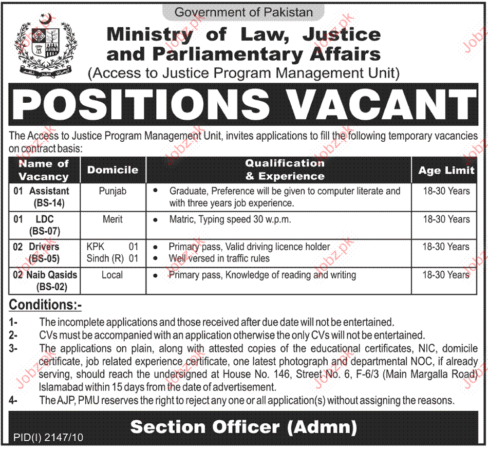 Assistant, LDC, Driver and Naib Qasids job Opportunity