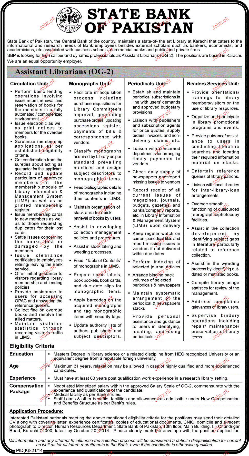 Apply as per details in job advertisement. Login to view further details of how to apply via https://www.jobz.pk online.