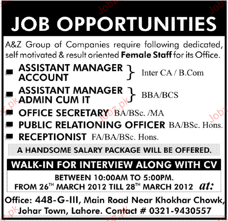 Apply as per details in job advertisement. Login to view further details of how to apply via https://www.jobz.pk online.