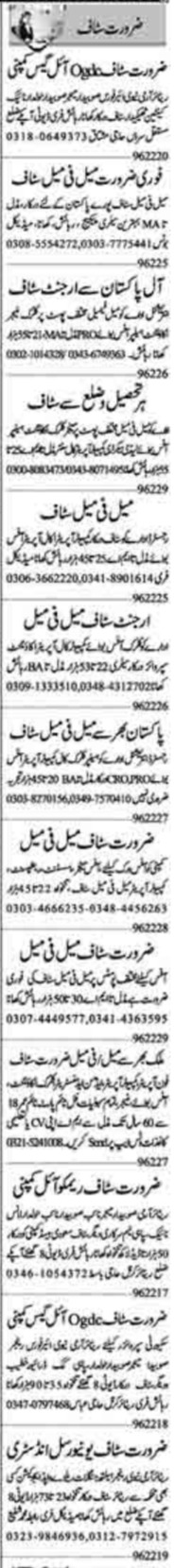 Apply as per details in job advertisement. Login to view further details of how to apply via https://www.jobz.pk online.