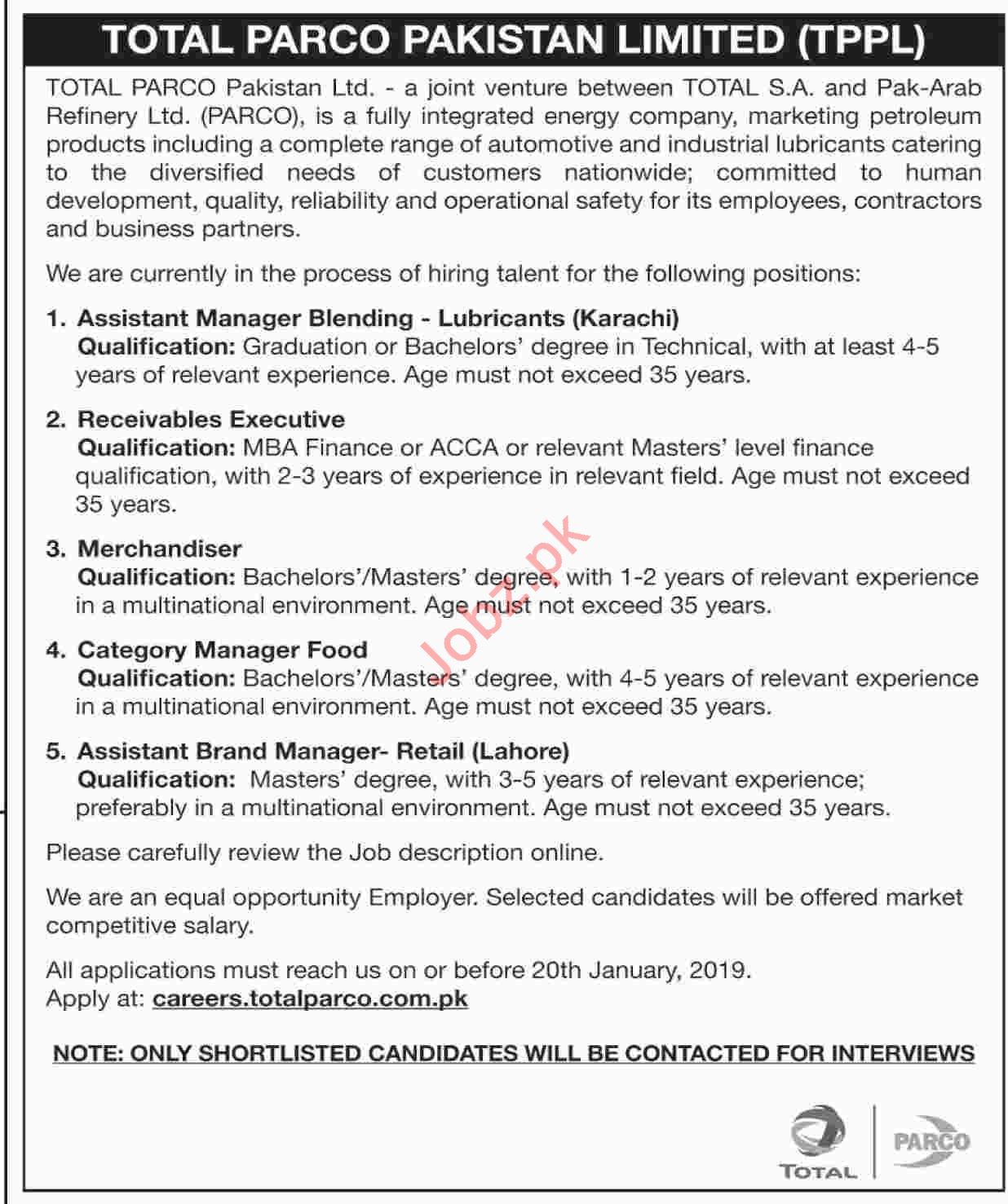Vacancies in Total Parco Petroleum Limited Company Advertisement January 2019