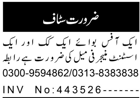 Assistant Manager & Cook Jobs 2025 In Peshawar