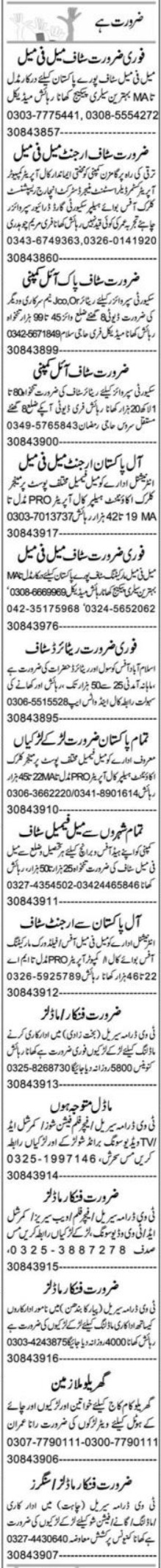 Private Company jobs advertisement dated about 18 February 2023 in daily Express Newspaper invites application for the vacant post of clerk, driver, manager, customer dealer, security supervisor, security guard, office staff, pro, actor, office boy, call operator, female office staff, district incharge, public relation officer, assistant manager, model, accountant, helper, receptionist, computer operator and supervisor in Lahore, lahore Punjab Pakistan. Educational qualifications required Middle, Bachelor, Intermediate and Matric etc.