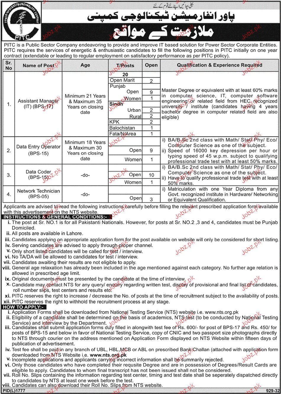 Apply as per details in job advertisement. Login to view further details of how to apply via https://www.jobz.pk online.