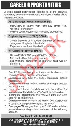 Latest Public Sector Organization Management Posts Islamabad 2025