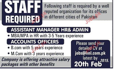 Assistant Manager HR And Accounts Officers Job Opportunity