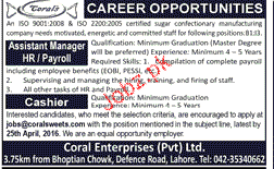 Assistant Manager HR and cashiers Job Opportunity