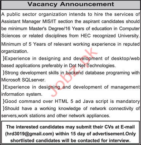 Apply as per details in job advertisement. Login to view further details of how to apply via https://www.jobz.pk online.