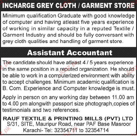 Apply as per details in job advertisement. Login to view further details of how to apply via https://www.jobz.pk online.