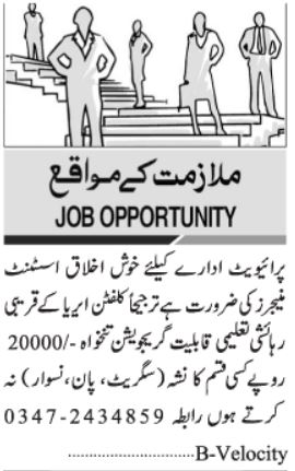 Latest Management jobs and others Classifieds jobs in Private Company closing date is around January 21, 2022, see exact from ad. Read complete ad online to know how to apply on latest Private Company job opportunities. Salary varies from 20000.
