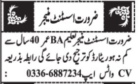 Vacant posts including assistant manager are announced in Private Company Quetta, quetta Balochistan Pakistan as per 29 July 2025 advertisement in daily Jang Newspaper. Educational qualifications required Bachelor and BA etc.