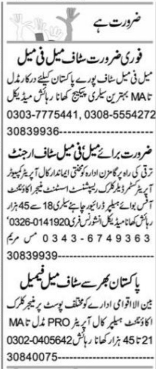 Educational qualifications required Middle, Intermediate, Bachelor and Matric etc.