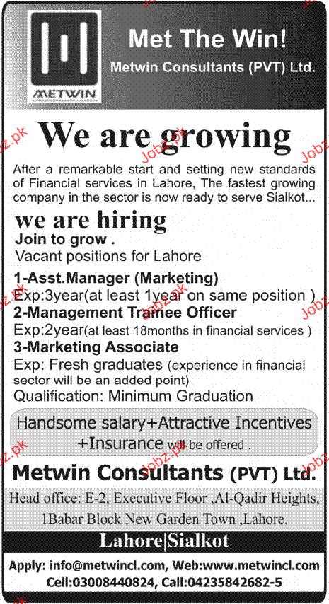Apply as per details in job advertisement. Login to view further details of how to apply via https://www.jobz.pk online.
